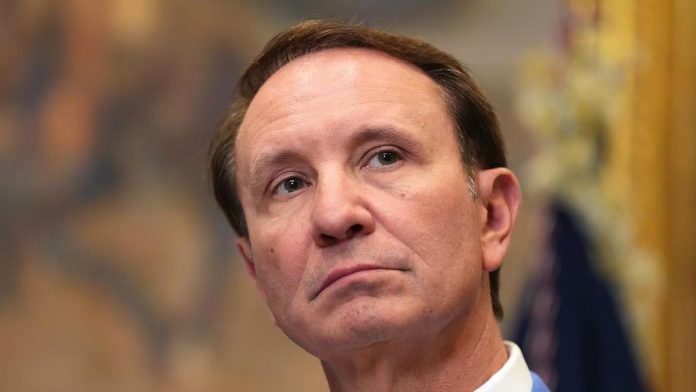 In this March 24, 2025, file photo, Louisiana Governor Jeff Landry speaks in the Roosevelt Room of the White House in Washington, D.C.