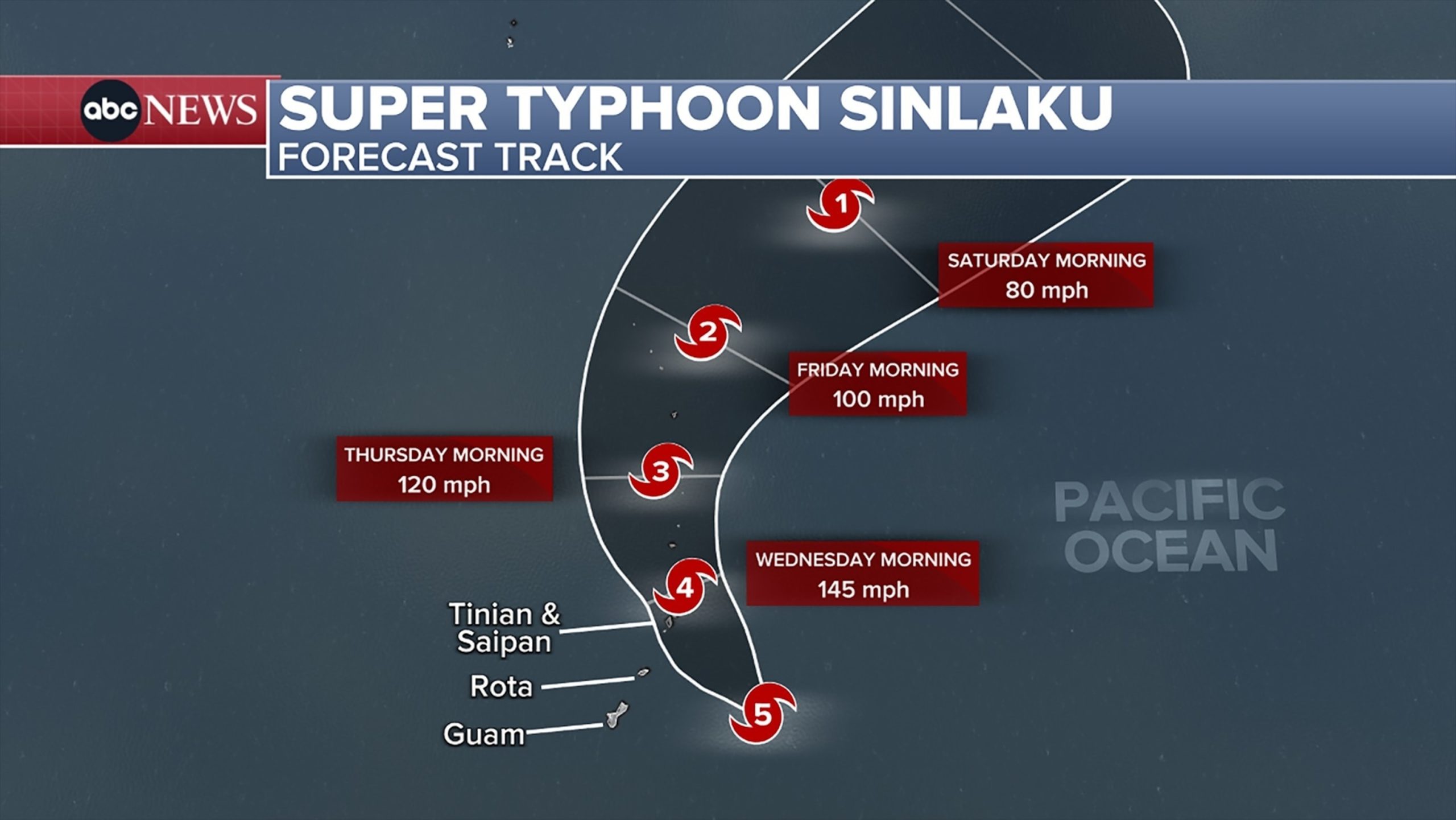 As of the latest forecast from the Joint Typhoon Warning Center, Sinlaku is then expected to track near or over the islands of Tinian and Saipan — among the principal islands of the U.S. Commonwealth of the Northern Mariana Islands — Tuesday night local time. It is expected to cross as a Category 4 or 5 storm, according to the NWS.