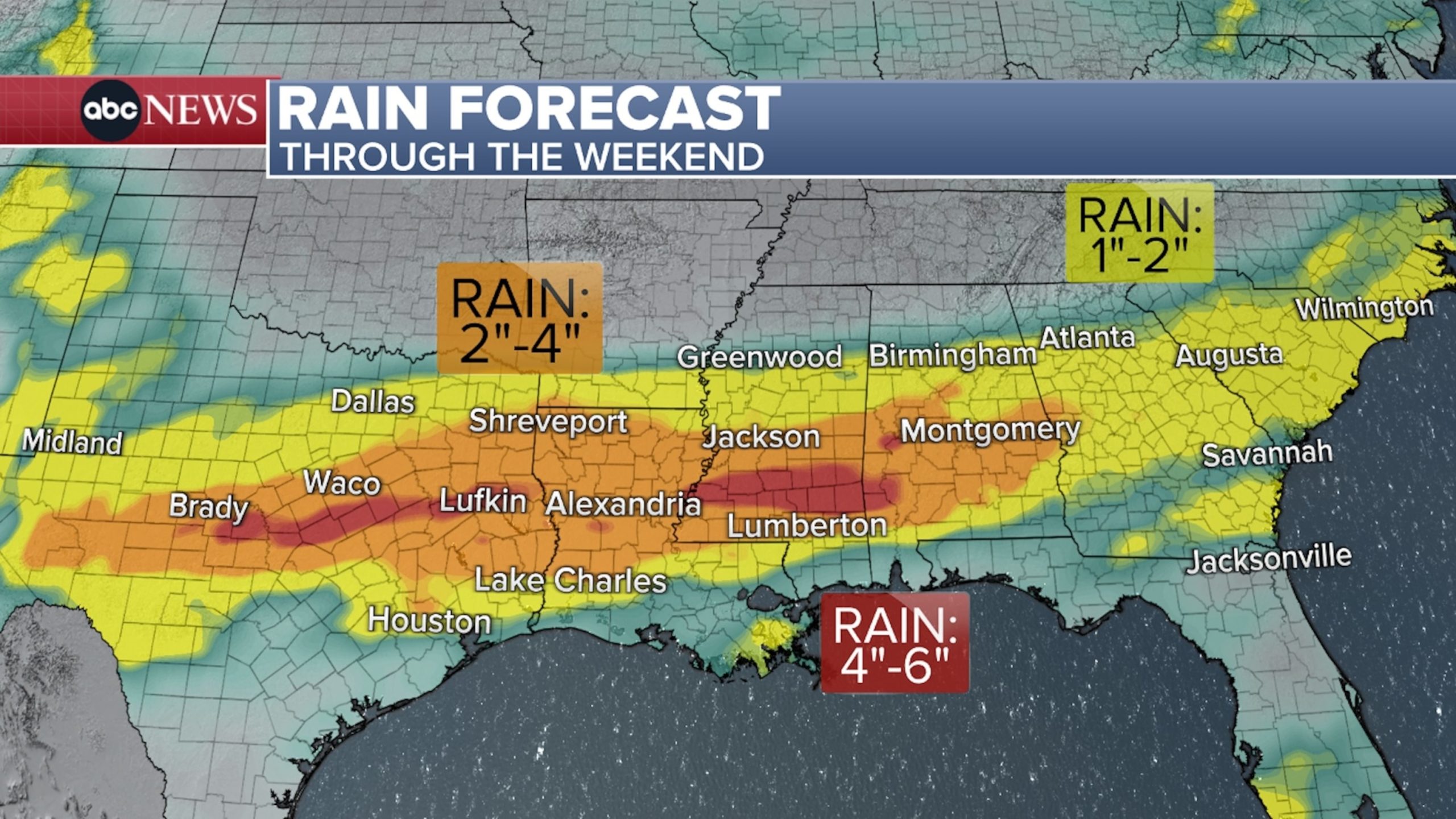 Rain forecast for the South through the weekend.