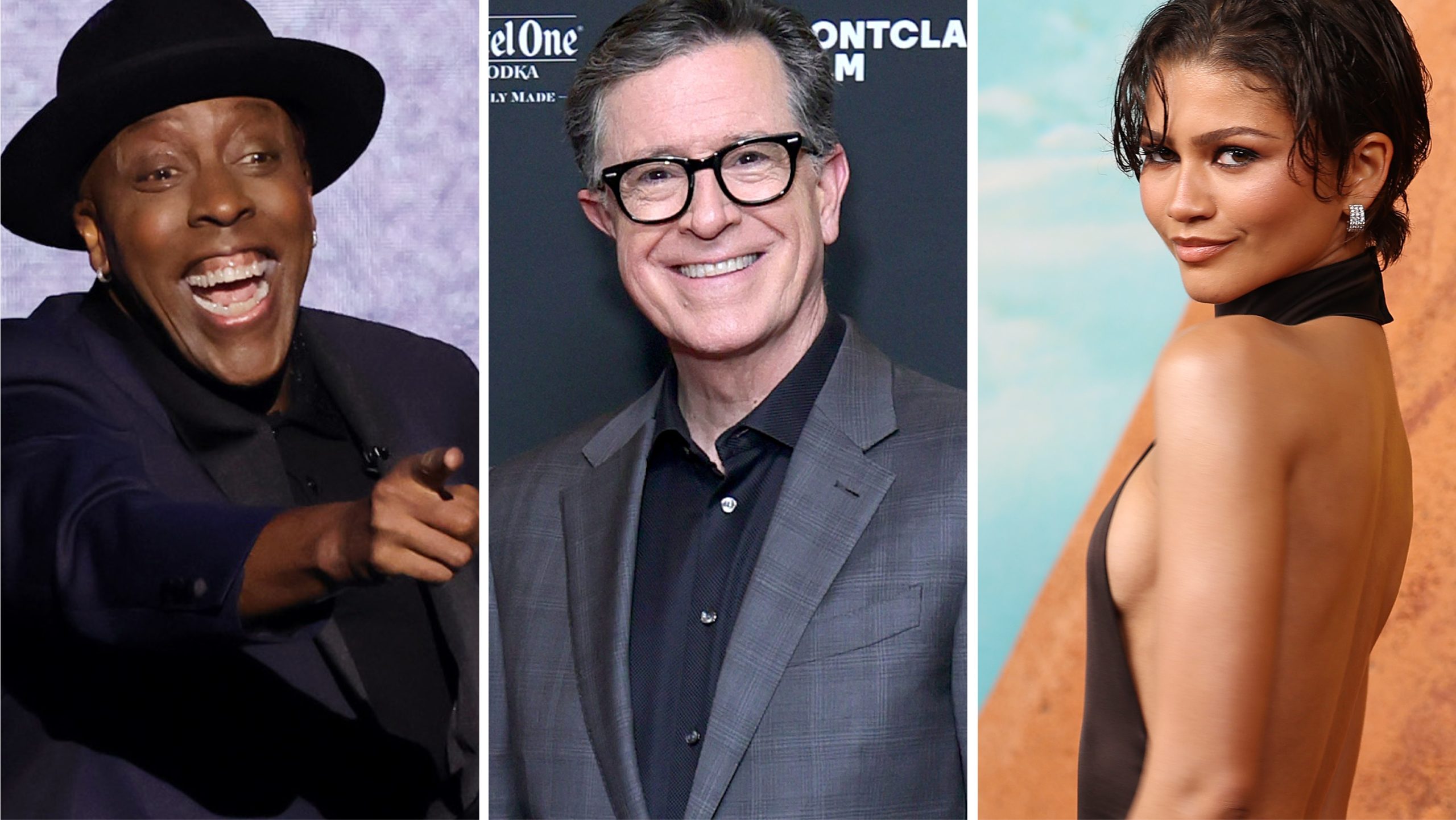 From left: Arsenio Hall, Stephen Colbert, Zendaya.